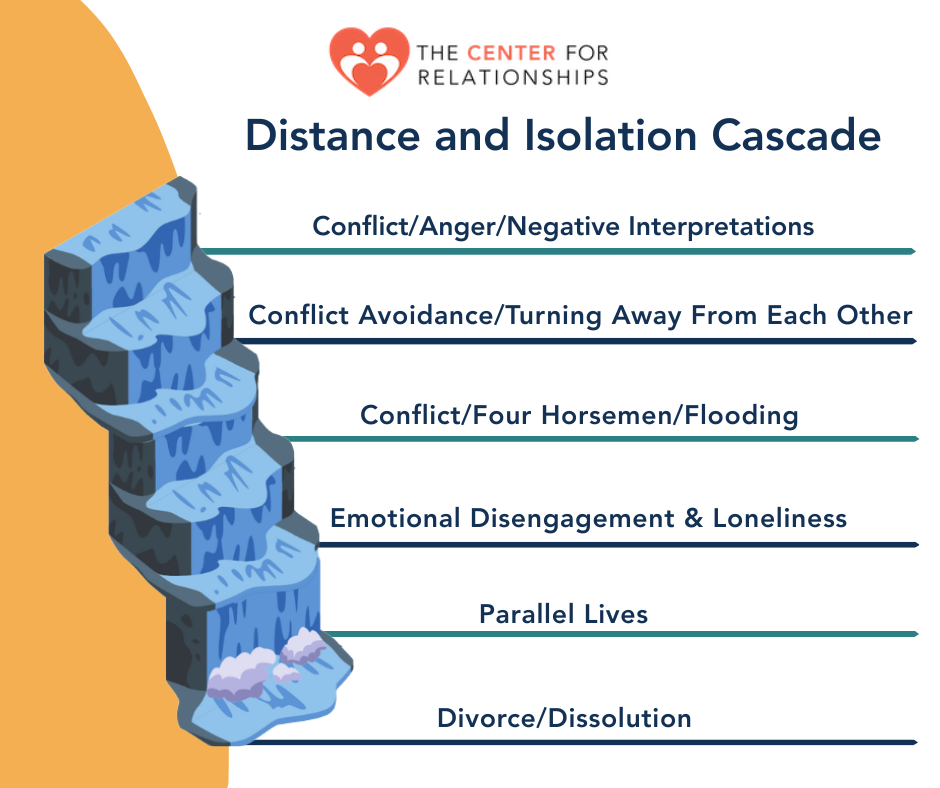 John Gottman, in his five decades of research on happy and ailing relationships, identified a critical process for us to understand: The Distance and Isolation Cascade. This is the slow and predictable slide toward the end of a relationship.