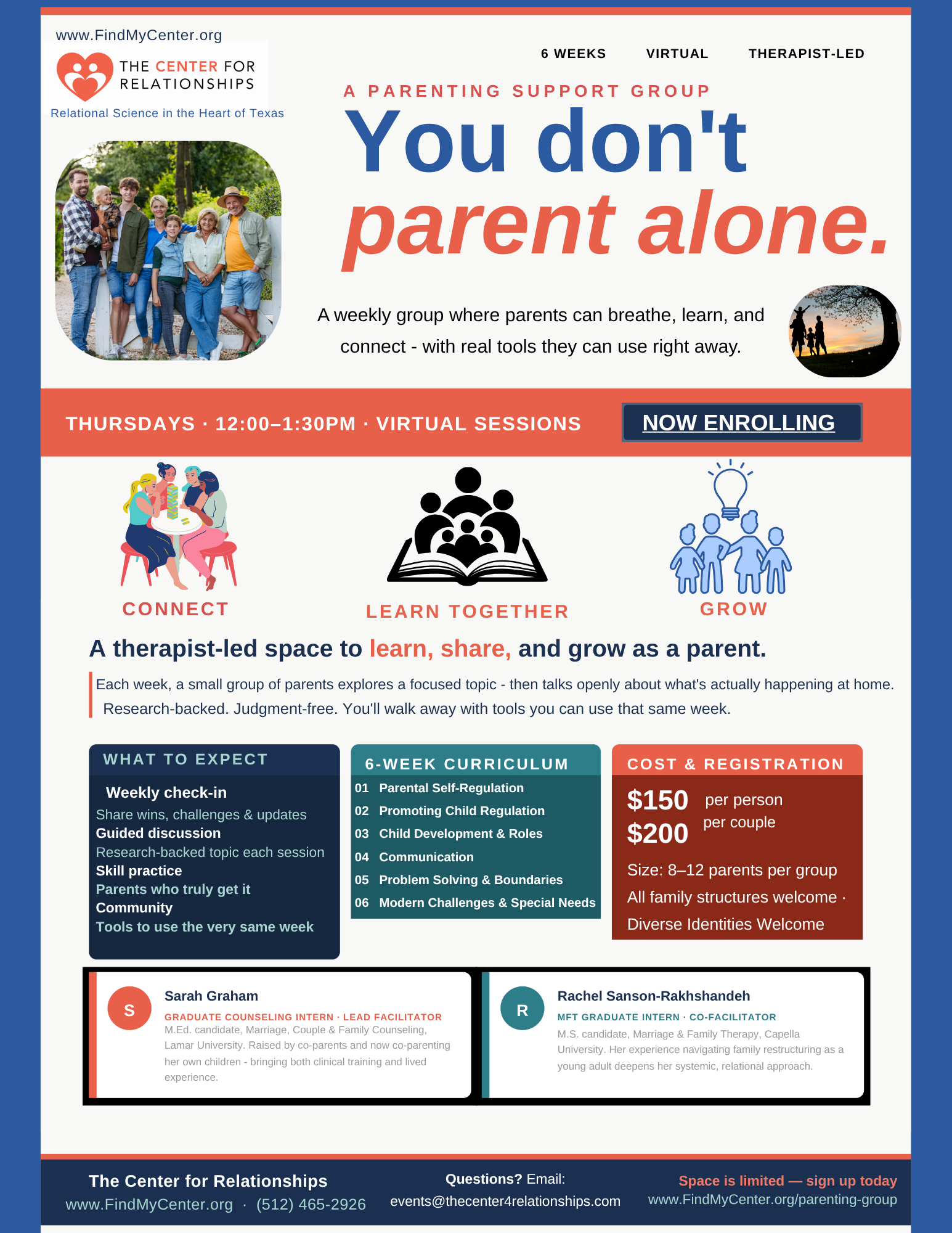 Join us for our Parenting support group, A weekly group where parents can breathe, learn, and connect - with real tools they can use right away.